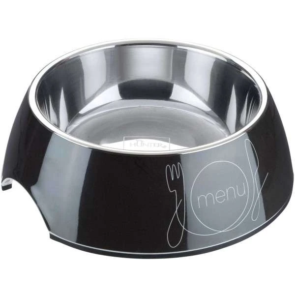 Der Hunter Hunde- oder Katzennapf mit dem robustem Melamin Gehäuse. Der Edelstahlnapf ist herausnehmbar, einfach zu pflegen & hygienisch. Melamin ist ein Spezialkunststoff, der äußerst leicht und gleichzeitig kratz- und stoßfest, langlebig und temperaturunempfindlich ist. Seine nahezu porzellanartige Oberfläche macht es so besonders hygienisch. Melamin ist somit ideal für die Verwendung mit Lebensmitteln geeignet. Auf glatten Fliesenböden rutschen Futternäpfe oft weg, wenn der Hund frisst. Mit dem Melamin-Napf Mogami kommt das nicht vor. Damit der Napf gut steht und beim Fressen nicht wackelt oder sich gar verschieben lässt, hat er am Boden einen Gummiring, der für festen Stand sorgt.