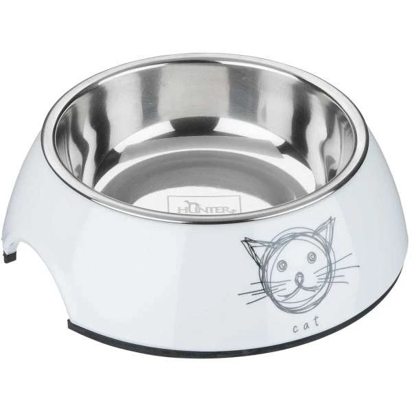 Der Hunter Hunde- oder Katzennapf mit dem robustem Melamin Gehäuse. Der Edelstahlnapf ist herausnehmbar, einfach zu pflegen & hygienisch. Melamin ist ein Spezialkunststoff, der äußerst leicht und gleichzeitig kratz- und stoßfest, langlebig und temperaturunempfindlich ist. Seine nahezu porzellanartige Oberfläche macht es so besonders hygienisch. Melamin ist somit ideal für die Verwendung mit Lebensmitteln geeignet. Auf glatten Fliesenböden rutschen Futternäpfe oft weg, wenn der Hund frisst. Mit dem Melamin-Napf Mogami kommt das nicht vor. Damit der Napf gut steht und beim Fressen nicht wackelt oder sich gar verschieben lässt, hat er am Boden einen Gummiring, der für festen Stand sorgt.