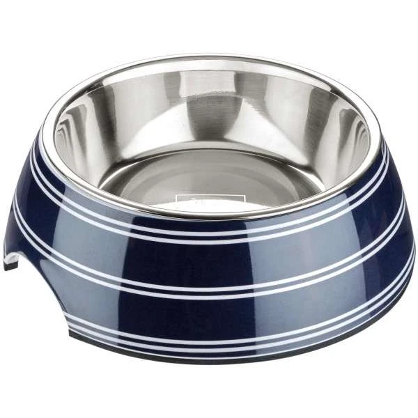 Der Melamin-Napf SILDA von Hunter überzeugt durch sein tolles Streifen-Design. Er ist kratz- und stoßfest sowie besonders pflegeleicht. Sehr praktisch ist der herausnehmbare Innennapf aus Edelstahl. Die Gummiaufsätze am Napfboden sorgen für einen sicheren Stand und verhindern ein Verrutschen des Napfes bei übermütigem Fress- oder Trinkverhalten. Er ist einfach zu reinigen. Einfach mit einem feuchten Tuch ausgewischt oder in der Spülmaschine reinigen.