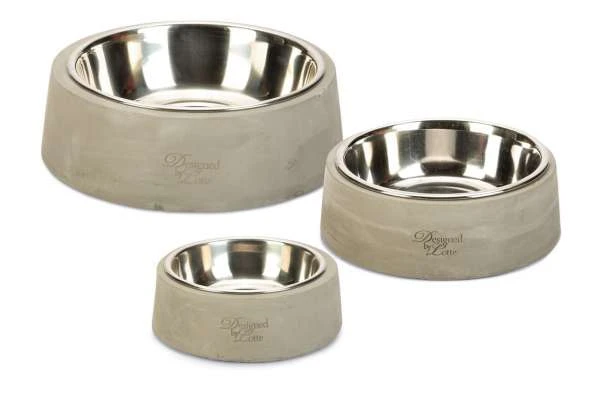 Designed by Lotte. Futternapf Riboco für Hunde ist ein robuster Napf aus Beton.Der Wasser- und/oder Fressnapf Riboco verfügt über Schutzfüße, um Kratzer am Boden zu vermeiden. Der Futternapf ist mit einem Edelstahlnapf ausgestattet, bei dem der Anti-Rutsch-Belag die Geräuschbildung reduziert. Der Edelstahlnapf ist spülmaschinengeeignet. Erhältlich in drei Größen.