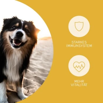 Diese Snacks sind ein echter Vitamin-Kick für immunstarke Hunde: Mit Probiotika, natürlichen Mikronährstoffen, den Vitaminen C und E sowie Zink unterstützen sie den Vitalstoffaufbau und viele Reparaturvorgänge im Körper des Hundes. Von Tierärzten entwickelt und unwiderstehlich lecker!