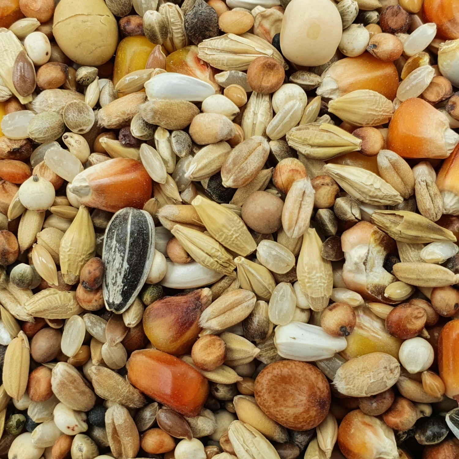 Die Mischung enthält weniger Mais als üblich, um die Wärmeentwicklung im Körper nicht noch zu beschleunigen. Außerdem enthält sie Sämereien, wie polierten Reis, die geeignet sind die Feuchtigkeit länger im Körper zu halten