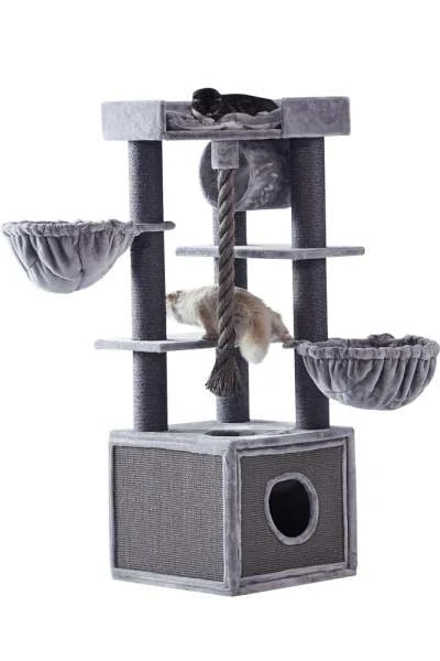Kratzbäume dienen zur Beschäftigung Ihrer Katze und bieten oft auch einen Rückzugsort an. Somit schützen Sie Ihre Einrichtung, da Sie Ihrer Katze mit dem Kratzbaum eine gute Alternative zur Pflege ihrer Krallen bieten. Der Kratzbaum ADILE von NOBBY mit seinen kuscheligen Liegemulden, eine große Platte mit Kissen und eine extra große Höhle bieten einen gemütlichen Rückzugsort. Ein Spielseil, Sisalstämme und die Höhle mit Sisalflächen sorgen für spielerische Abwechslung und die nötige Krallenpflege. Durch die große Höhle mit den Maßen 60 x 60 x 47 cm und die breiten Sisalstämme mit einem Durchmesser von 12 cm wird ein stabiler Stand gesichert. Er hat eine Gesamthöhe von 166 cm.