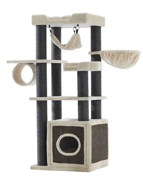 Kratzbäume dienen zur Beschäftigung Ihrer Katze und bieten oft auch einen Rückzugsort an. Somit schützen Sie Ihre Einrichtung, da Sie Ihrer Katze mit dem Kratzbaum eine gute Alternative zur Pflege ihrer Krallen bieten. Der Kratzbaum FARIS von NOBBY steht auf einer Grundfläche von 70 x 60 cm und ist 173 cm hoch. Die Kratzstämme bestehen aus Sisal und sind Ø 12 cm groß. Der Kratzbaum ist mit einer großen Höhle, einer Liegemulde, einer Hängematte und Röhre und vielen weiteren Liegeflächen ausgestattet.
