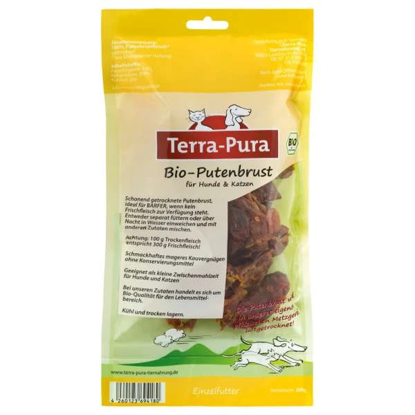 100 % Bio-Putenbrustfleisch, getrocknet |
